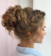 While the high pony creates a formal look, the curls and delicate accessories add some softness and a sensuous charm to this 'do. For a more contemporary prom hairdo, forget the neatness and elegance and try on something daring. This bun styles for long hair is a skilled way to flaunt your natural hair length. If you are interested in elegant wedding hairstyles for mature women with long hair just prefer the sophisticated updos or elegant wedding hairstyles half up. Let everyone see how luscious and long your hair is. If you are going to a fancy event and you don't have time for a hairdresser, tease your curled hair and pull it back into a cute low bun. Formal hairstyles for long hair to wear at prom picking up the proper prom updo is a major deal. Grab a small piece of hair from underneath the hair tie and pull it taut and hold firmly. Let the remaining hair be loose. Straight hair will fare best with this style, and don't forget those loose hair wisps on the side. The final among the updos for long hair we will be talking about this hairstyle is this one. Long curly thick hair is a classic option for messy braided hairstyles. Messy updo hairstyle for thick curly hair.